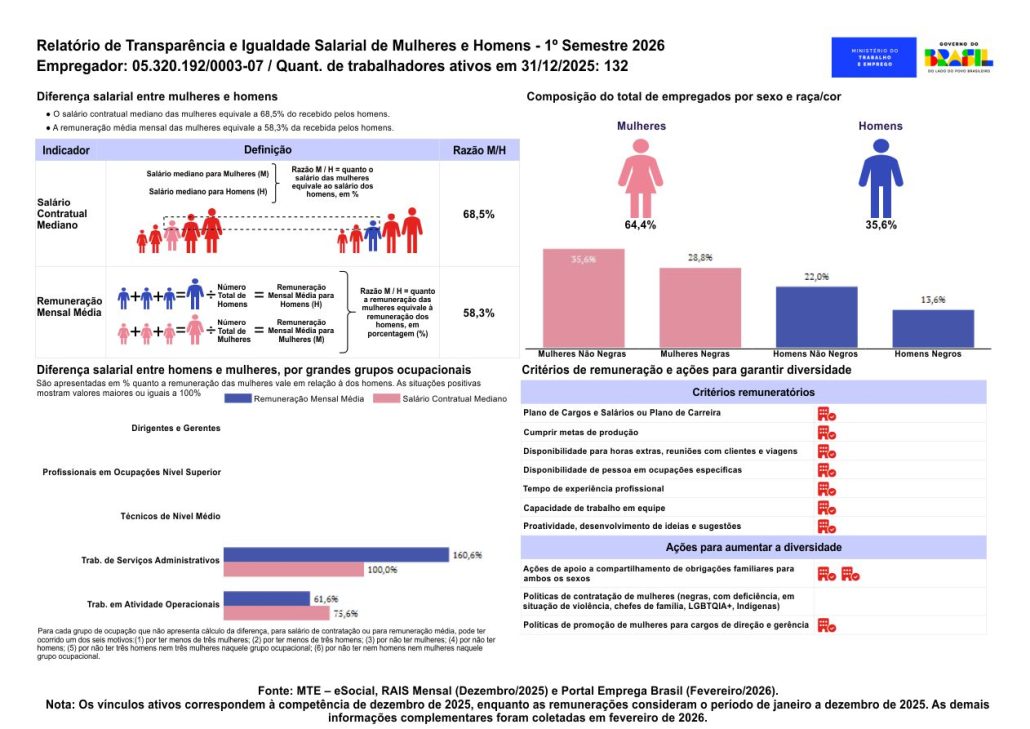 Reforçamos nosso compromisso com a promoção da equidade de gênero, a transparência nas relações de trabalho e a valorização das pessoas em todas as nossas operações.